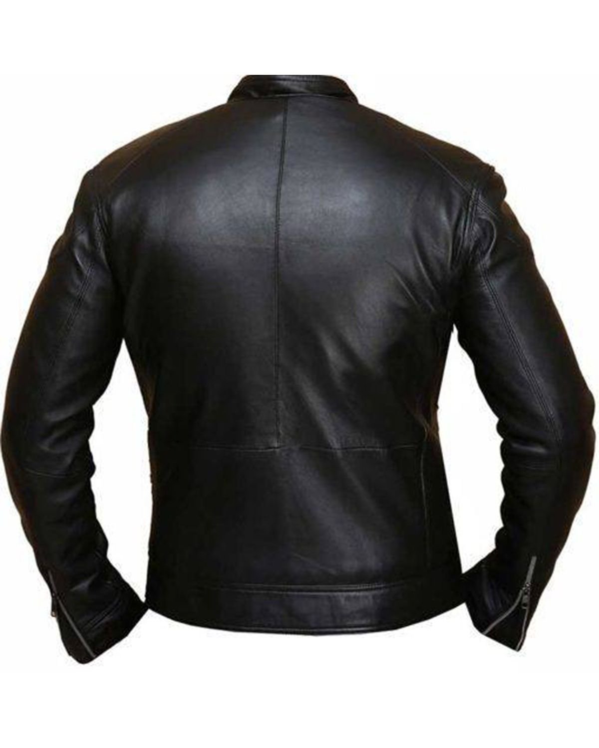 Men’s Black Short Collar Biker Genuine Sheepskin Leather Jacket